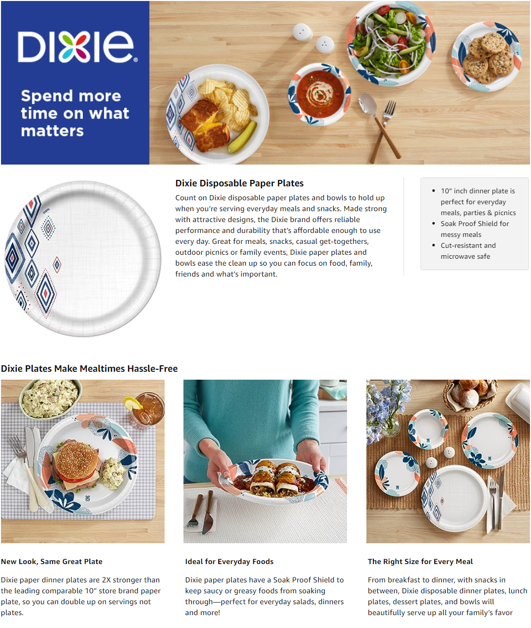 - Dixie Ultra 10 inch disposable paper plates are built strong with Flex-Proof Technology to handle heavy, messy meals
